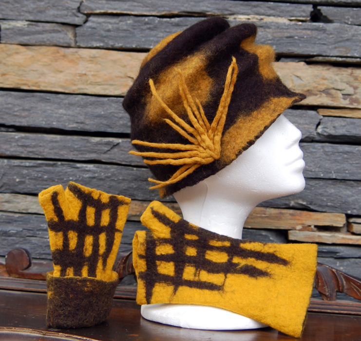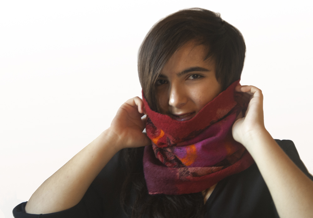 El arte del afieltrado es único, hecho con fibras no tejidas de lanas textiles que se unen para formar una estera densa cuando se someten a calor, humedad y fricción, un método 100% sostenible. El afieltrado es muy versátil y se puede moldear de forma tridimensional. Se pueden conseguir piezas gruesas y duras o muy delgadas y flexibles.
